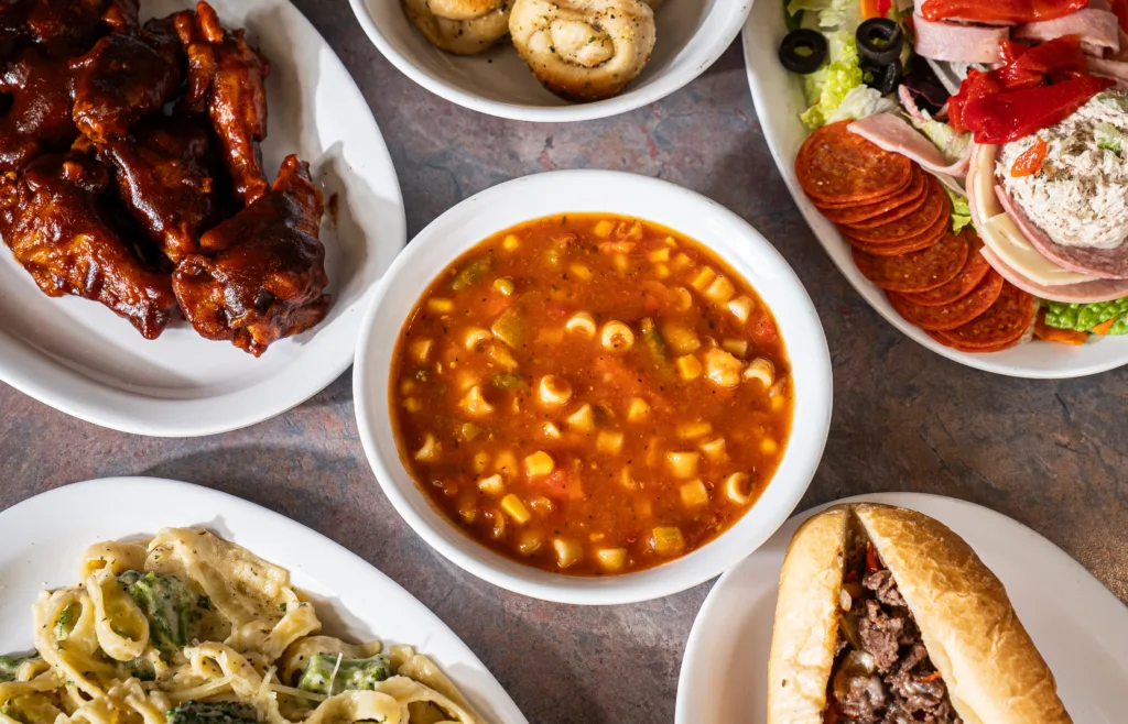 Fried Onions, Sweet Peppers, Mushrooms, Hot Peppers, Extra Cheese, Sauce